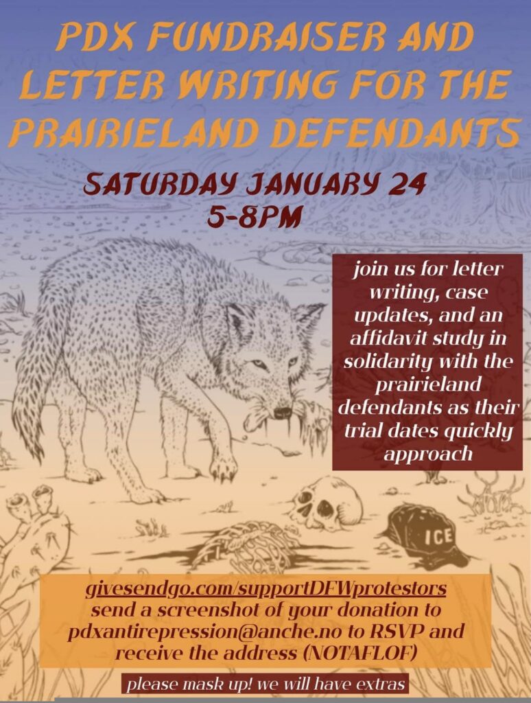 A new Prarieland Defendants support website is now live –– https://prairielanddefendants.com/about-the-case/ –– with information about the defendants and ways to support, to get involved, and to fight together to challenge what is a major escalation in repression against autonomous movements of liberation.